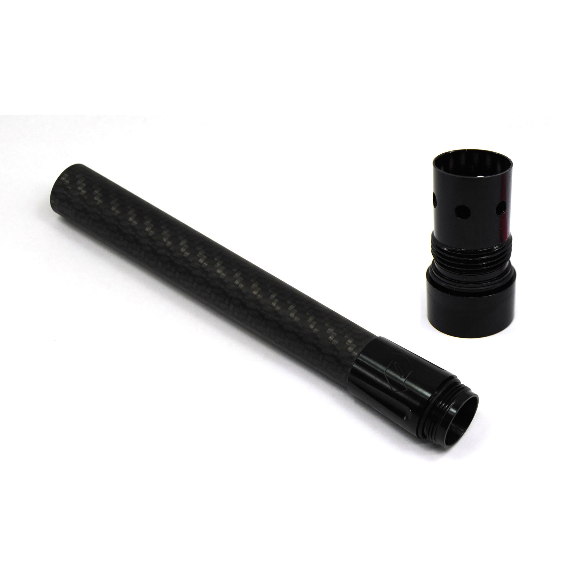 Unlike other carbon fiber barrels, the Fibur-X8 barrel is built with a unique 3 layer construction. 2x2 satin Twill external, uni-direction fibers laid up in a strong multi-vector pattern, and then a super slick "Silkfiber" inside that can be safely swabbed. CNC align-bored segment for the insert area, CNC-ported with 4 rows of straight ports, and then hand-assembled and quality checked-- You can't get any more accurate.