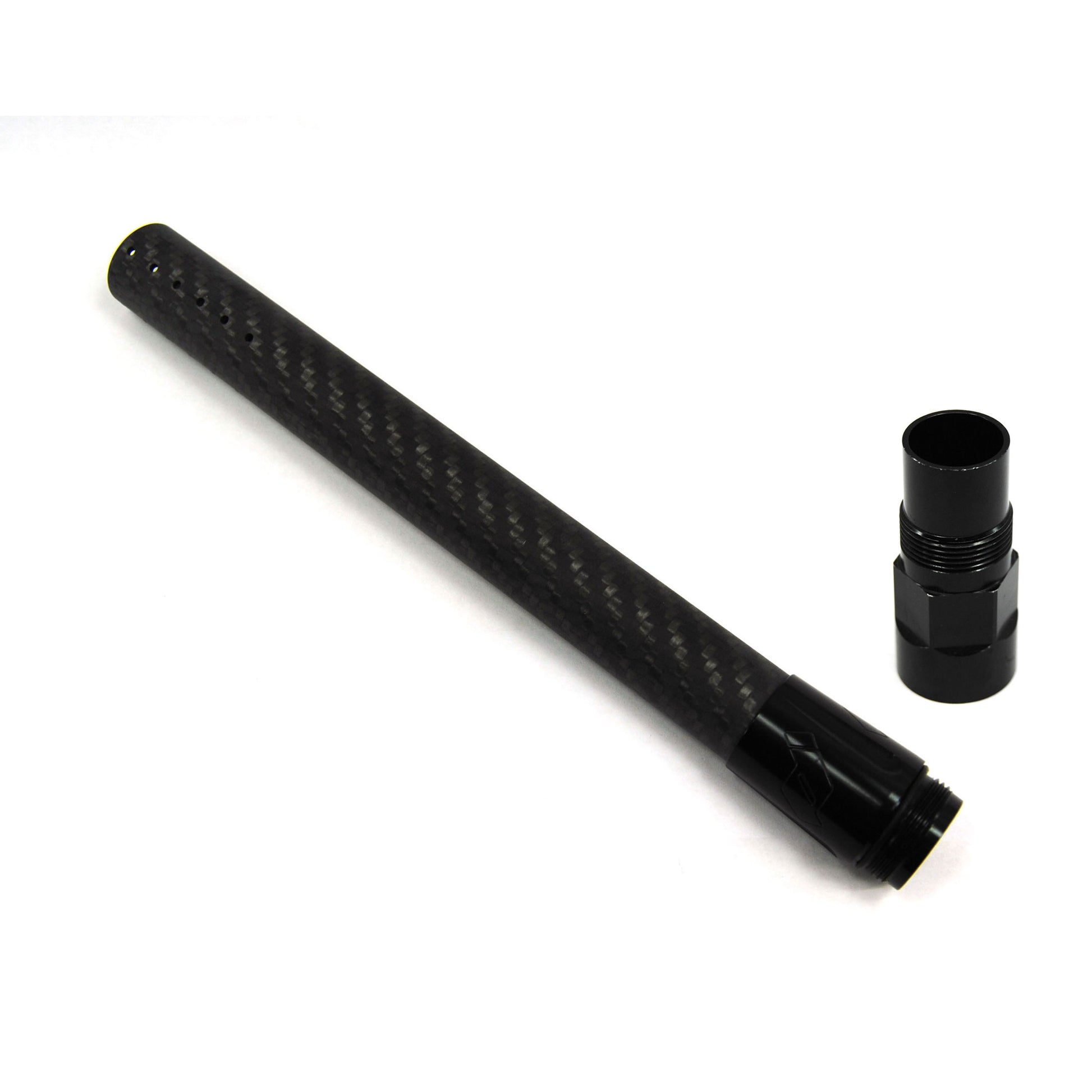 Unlike other carbon fiber barrels, the Fibur-X8 barrel is built with a unique 3 layer construction. 2x2 satin Twill external, uni-direction fibers laid up in a strong multi-vector pattern, and then a super slick "Silkfiber" inside that can be safely swabbed. CNC align-bored segment for the insert area, CNC-ported with 4 rows of straight ports, and then hand-assembled and quality checked-- You can't get any more accurate.