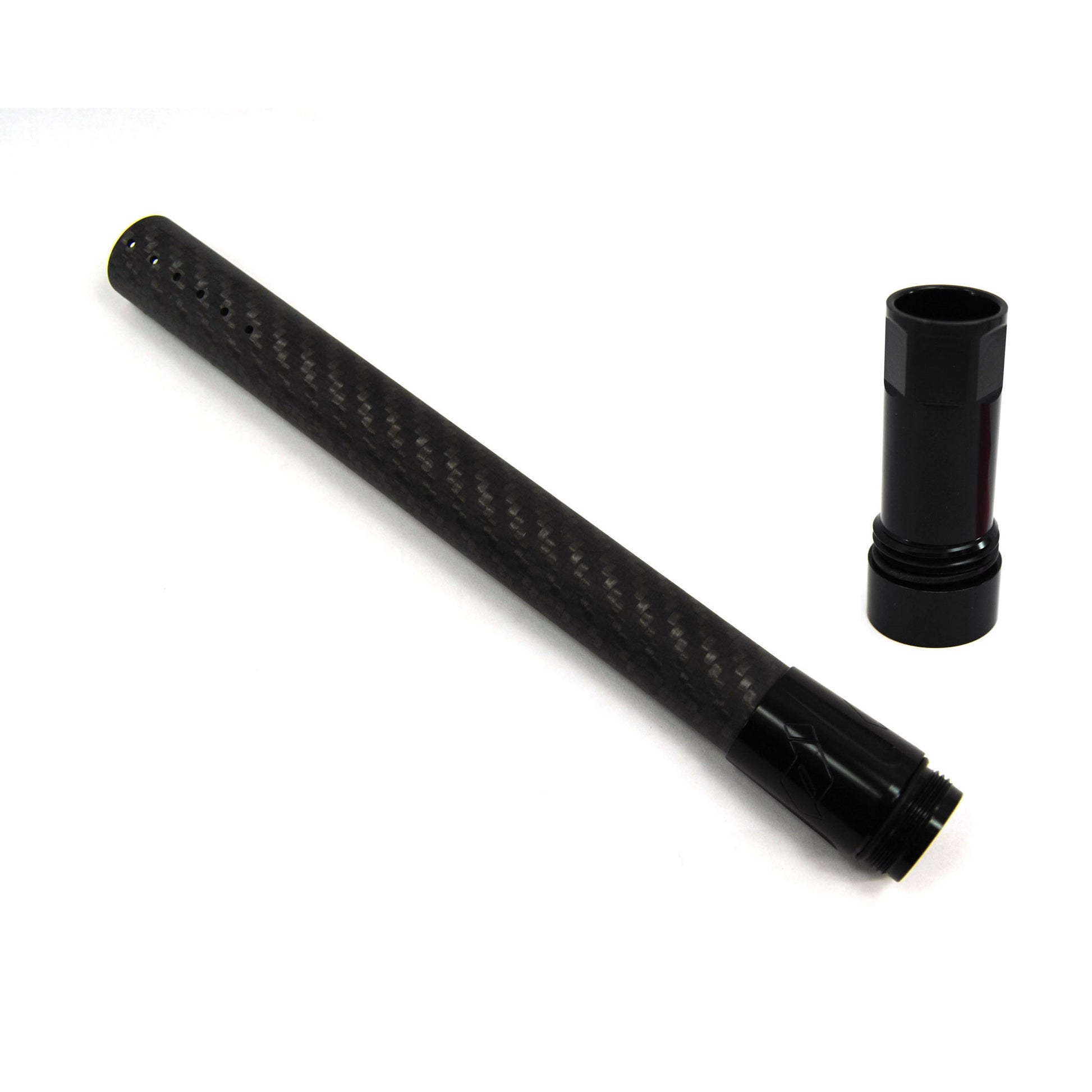 Unlike other carbon fiber barrels, the Fibur-X8 barrel is built with a unique 3 layer construction. 2x2 satin Twill external, uni-direction fibers laid up in a strong multi-vector pattern, and then a super slick "Silkfiber" inside that can be safely swabbed. CNC align-bored segment for the insert area, CNC-ported with 4 rows of straight ports, and then hand-assembled and quality checked-- You can't get any more accurate.