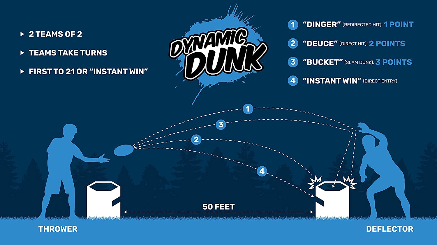 Dynamic Discs Dynamic Dunk provides an exciting, interactive, fast-paced team game for everyone to enjoy! Dynamic Dunk incorporates throwing accuracy and player agility while packing up into a mesh carrying bag that is easy to carry and store! The Dynamic Dunk comes with two targets that collapse and fold down flat for convenient storage but even easier assembly. Fully equipped with two easy-to-throw and comfortable feeling ultimate discs and an intuitive built-in scoring system, Dynamic Dunk offers hours of fun without an expensive price tag. Dynamic Discs Dynamic Dunk is perfect for backyards, parks, the beach, camping, tailgating, and more!