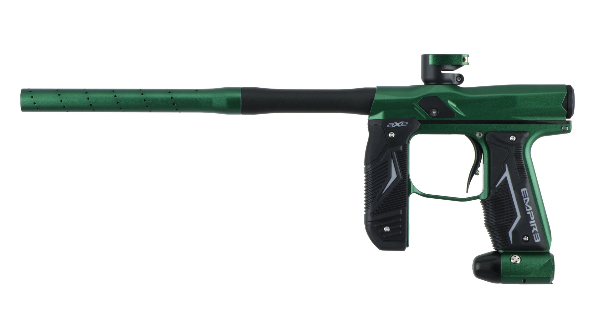 Empire Paintball now offers the next generation of the impressive Axe marker. This new Axe features improved accuracy, lighter weight, a remodeled foregrip and increased resistance to weather. The two-piece Driver XX barrel will provide increased accuracy and accepts Pipe barrel backs to get the perfect ball-to-barrel match. The new marker weighs 10% less by remodeling the foregrip and changing the feedneck. The main and fore-grip now feature a micro-texture that increases hand grip even when getting splattered by paint. The newly designed connections between the body and foregrip, plus the change in foregrip material make this the most weatherproof Axe yet. When Empire designed the original Axe, we hit a home run and now with these more refinements, it’s a grand slam.
