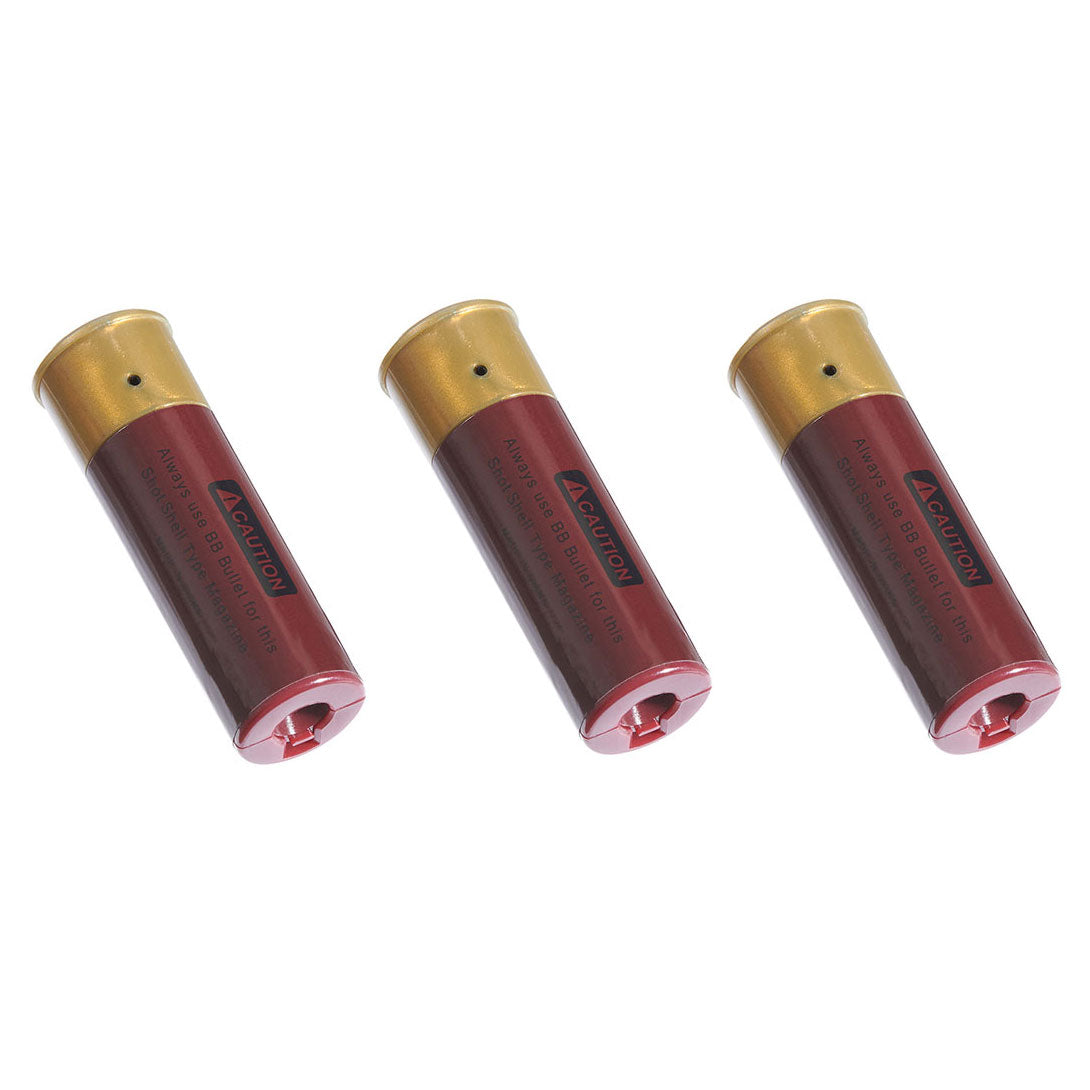 • Shell style magazine system firing three BBs simultaneously