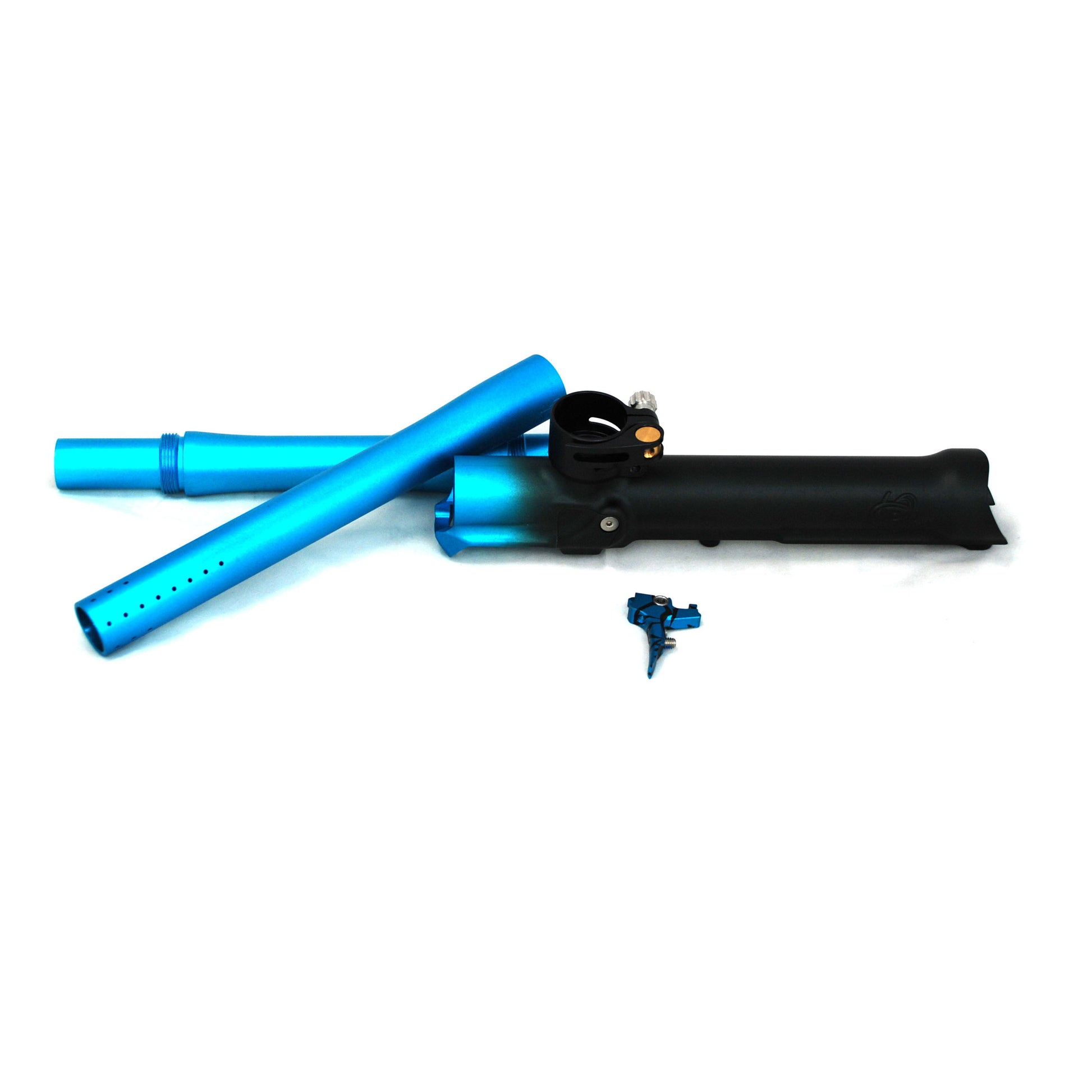 Body, detent cover, Fang trigger and barrel front are anodized to match. Barrel back and feedneck are matte black.