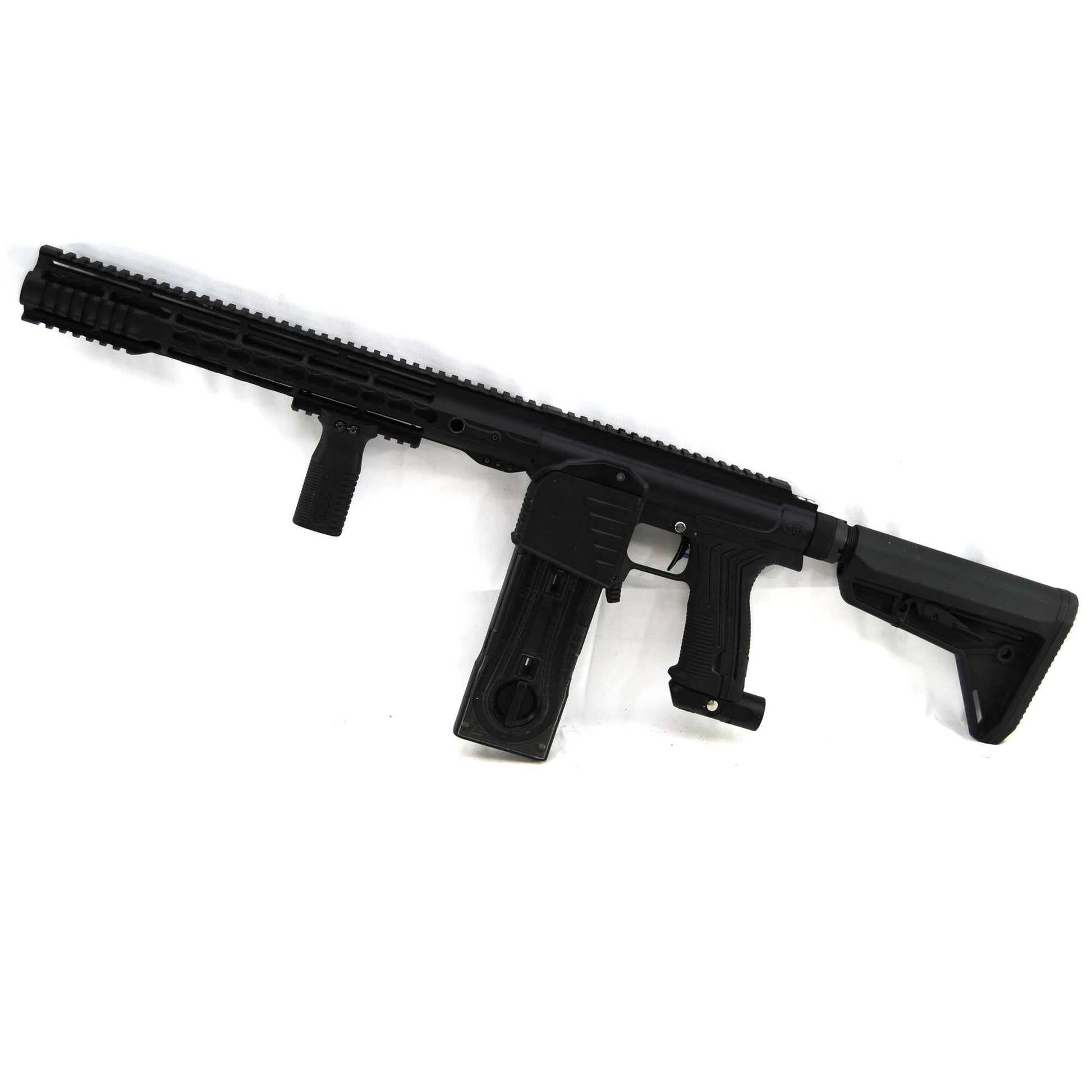 This marker comes with everything shown in the pictures. The marker has minor scratches on the body and handguard as well as paint blemishes on the body. It has been tested by our trained technician and is in working condition.